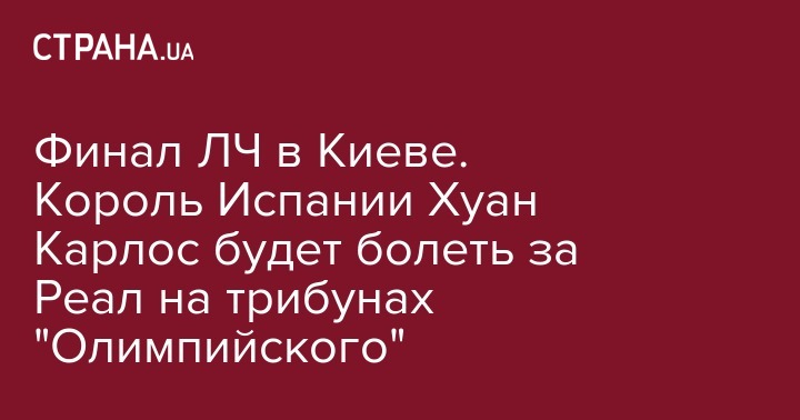 Король Испании Хуан Карлос (он правил страной с 1975  по 2014, а затем передал трон сыну, но не потерял титул), посетит Украину для поддержки футбольного клуба "Реал" (Мадрид, Испания) на финале Лиги чемпионов УЕФА в Киеве 26 мая. Об этом Украинским Новостям сообщил источник в дипломатических кругах.