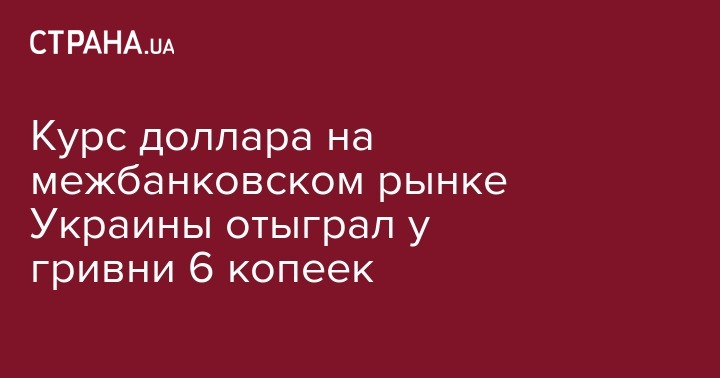 Курс доллара на межбанковском рынке Украины отыграл у гривни 6 копеек