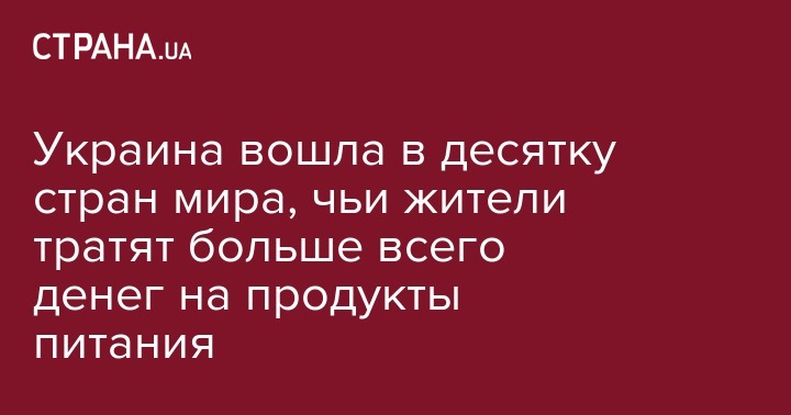 Украина вошла в десятку стран мира, чьи жители тратят больше всего денег на продукты питания
