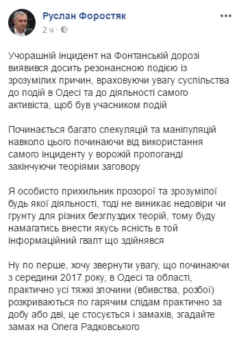Следствие рассматривает три версии нападения на экс-лидера местной ячейки Правого сектора в Одессе Сергея Стерненко.