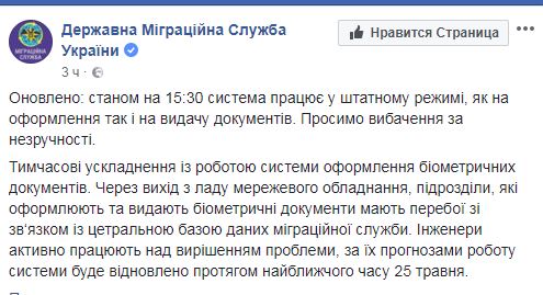 Сегодня, 25 мая возникли проблемы с работой системы оформления биометрических документов.