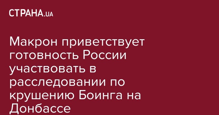 Макрон приветствует готовность России участвовать в расследовании по крушению Боинга на Донбассе