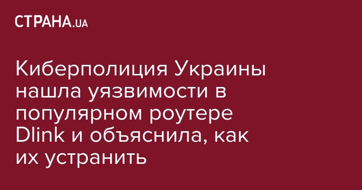 "Найденные уязвимости позволяют получить полный доступ к устройству, а также выполнять удаленные команды. Это создает угрозу утечки информации пользователей, компрометации аутентификационных данных (похищение логина и пароля) и всей сети, где используются такие модели маршрутизаторов. К сожалению, на момент исследования и публикации этой статьи, изготовитель (Dlink) не выпустил обновленного программного обеспечения, которое бы исправило выявленных недостатках и ликвидировало уязвимости", - говорится в обнародованном в пятницу вечером сообщении Департамента Киберполиции.