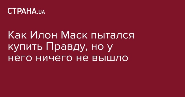 "Попробовал приобрести Pravda.com, но Россия сказала нет. Оказывается, они уже его используют", - говорится в сообщении на аккаунте миллиардера в Твиттер в пятницу. При этом адрес pravda.com перенаправляет запросы на сайт "Украинской правды" (то есть, по словам Маска получается, что Россия использует сайт УП).