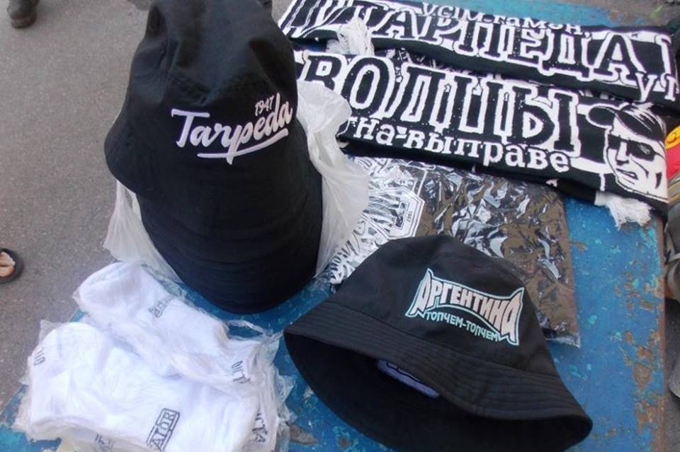 "В ходе совместного с представителями таможни осмотра в них была найдена символику с агрессивными элементами изображения фанатов - ультрас футбольного клуба", - отметили в Госпогранслужбе.