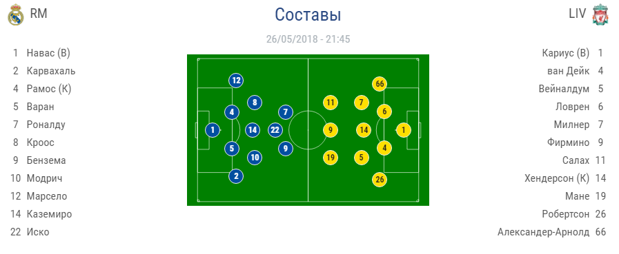 Мадридцев возглавляет легендарный Криштиану Роналду, а ливерпульцев – лучший бомбардир сезона Мохамед Салах. Тренер испанцев – Зинедин Зидан, англичан – Юрген Клопп.