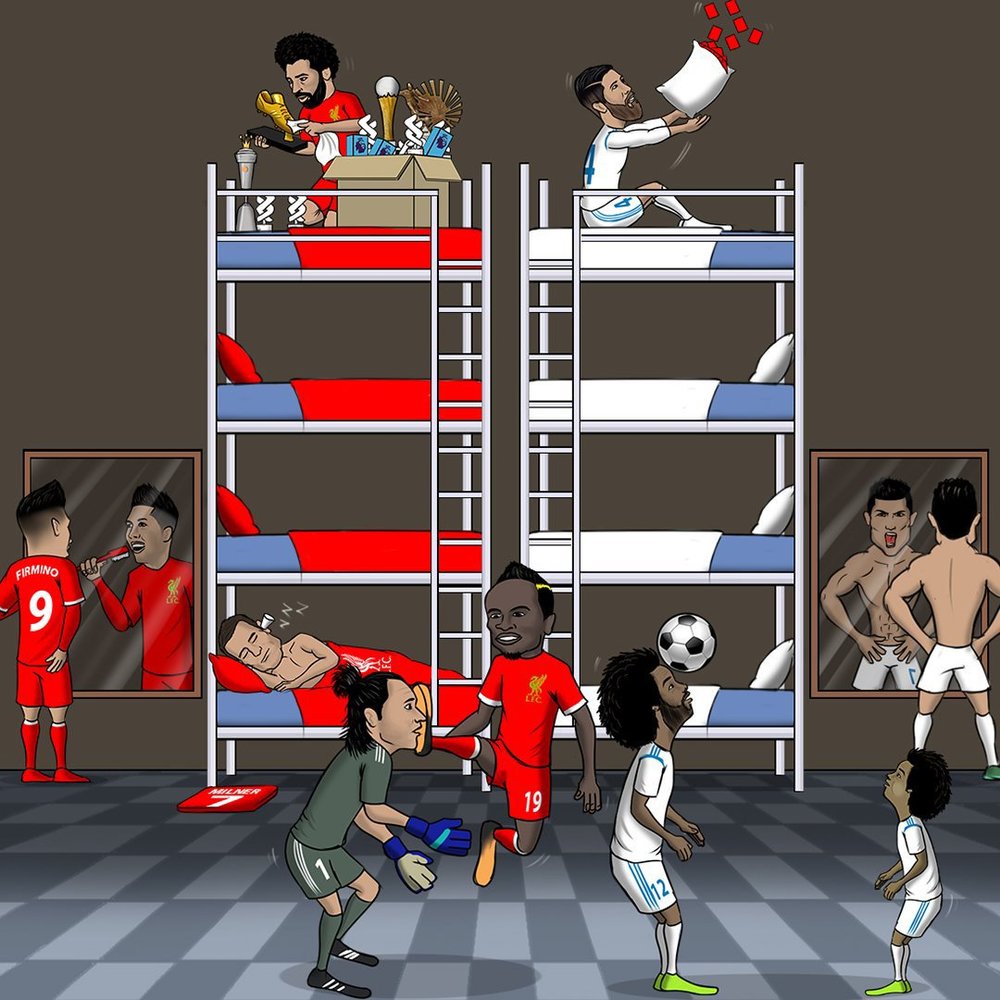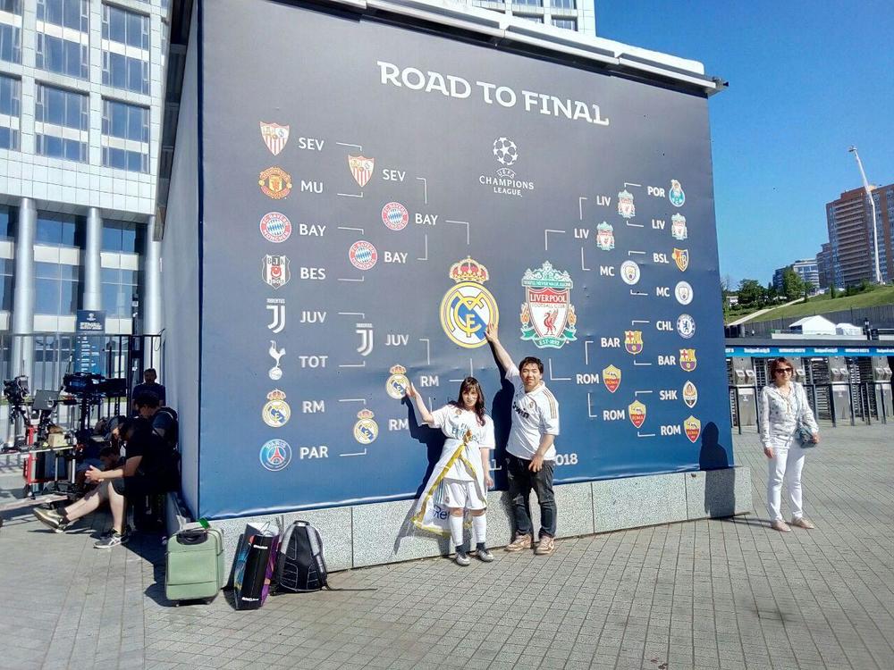 Девочка из Бразилии, мужики в красном из Ливерпуля, мужики в белом из Мадрида.