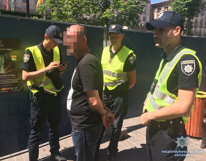 Полицейские срочно передали приметы грабителя своим коллегам. Патрульные полицейские, которые находились с другой стороны фан-зоны, заметили двух мужчин, остановили их и доставили в Печерское управление полиции. Уже установлено, что один из них - россиянин, другой - уроженец Донецкой области, который находится в розыске за совершение мошенничества и подделку документов.