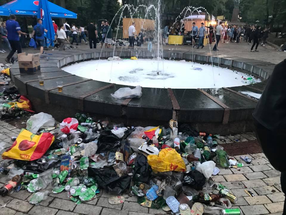 Пустые бутылки и горы мусора. Появились фото, что оставили после себя фанаты Ливерпуля в парке Шевченко