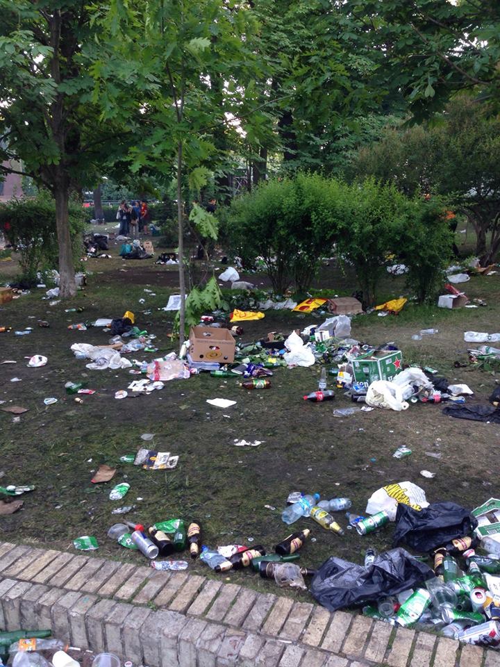 По словам Федченко, в парке достаточно урн, однако весь мусор европейцы бросали под ноги. Он пишет, что в парке есть даже совсем пустые урны.