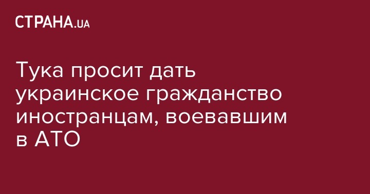 Об этом он сообщил в эфире "Подробности недели". Тука уточнил, что бойцы из Чечни, Грузии, Литвы, Швеции и Беларуси, которые находятся в зоне АТО и защищают Украину, должны иметь право стать гражданами Украины.