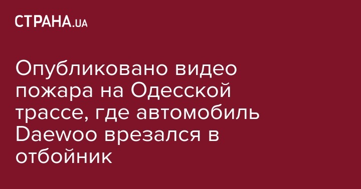 Опубликовано видео пожара на Одесской трассе, где автомобиль Daewoo врезался в отбойник