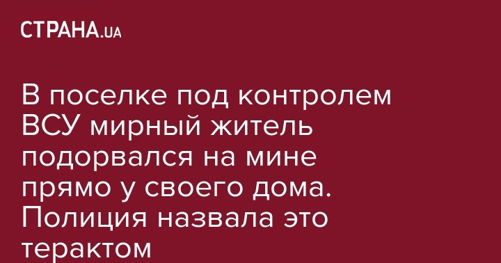 В поселке под контролем ВСУ мирный житель подорвался на мине прямо у своего дома. Полиция назвала это терактом