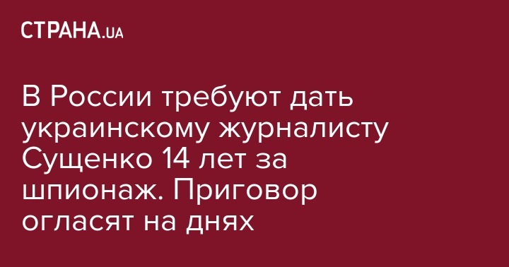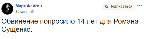 Также он заявил, что обвинение требует в качестве наказания для Романа Сущенко 14 лет лишения свободы.