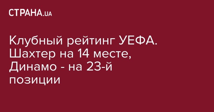 Итоги минувшего евросезона для Шахтера можно считать нормальными. У Динамо дела, конечно, похуже. В новом рейтинге УЕФА, "горняки" занимают 14 место, а "бело-синие" расположились на 23 месте.