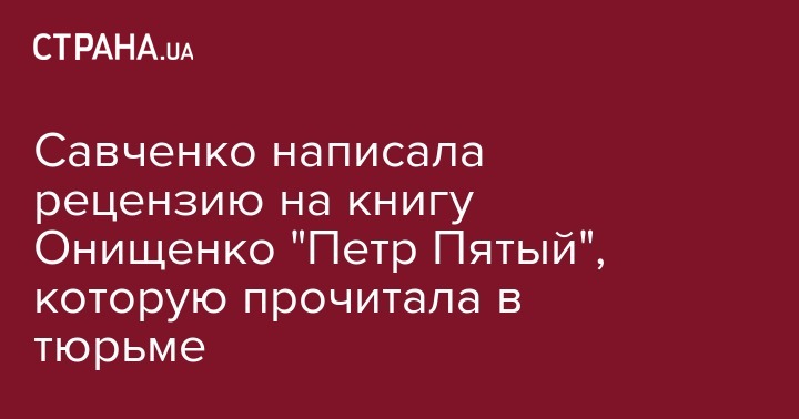 Савченко написала рецензию на книгу Онищенко "Петр Пятый", которую прочитала в тюрьме