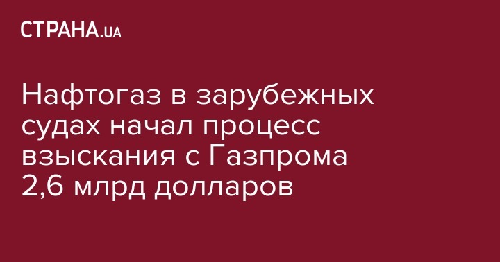 НАК "Нафтогаз Украины" начал процесс взыскания с ПАО "Газпром" (РФ) долга в 2,6 млрд долларов в зарубежных судах во исполнение решения Арбитражного института Торговой палаты Стокгольма. Об этом сообщает Интерфакс со ссылкой на источник в украинском правительстве.