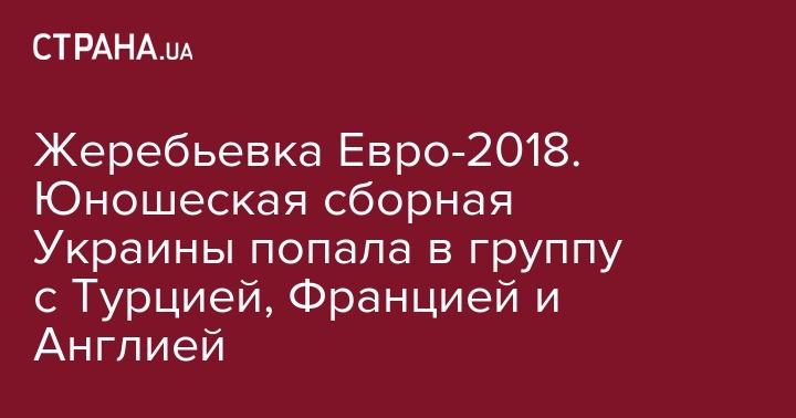 Жеребьевка Евро-2018. Юношеская сборная Украины попала в группу с Турцией, Францией и Англией