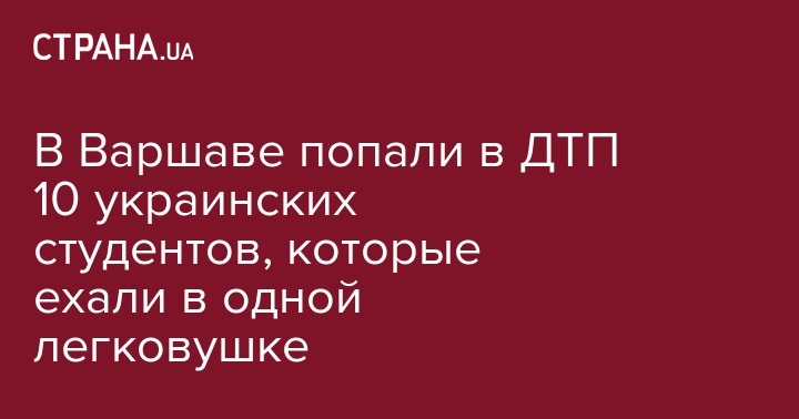 Десять украинских студентов попали в ДТП в польской столице - Варшаве. Как сообщает TVN 24, молодые люди возвращаясь с вечеринки, все они ехали в одном легковом автомобиле.