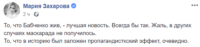 "То, что Бабченко жив, - лучшая новость. Всегда бы так. Жаль, в других случаях маскарада не получилось.