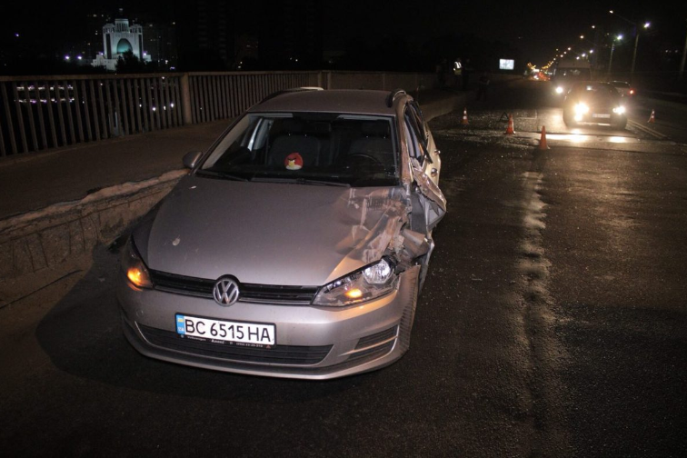На мосту Метро в Киеве прицеп, который отцепился от Renault Symbol, врезался в Volkswagen Golf.