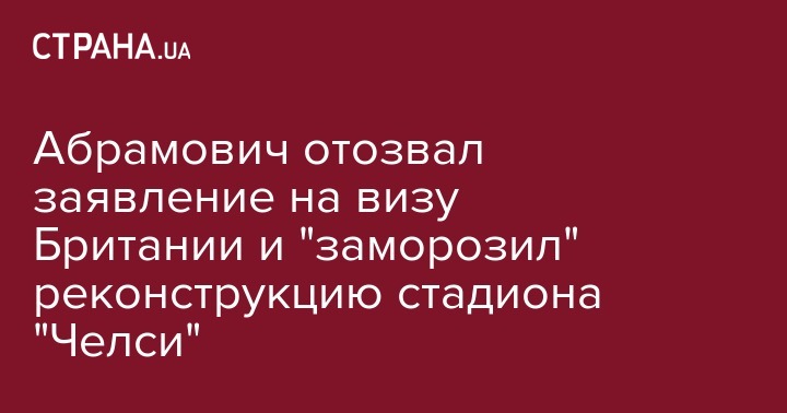 Российский миллиардер Роман Арбамович, у которого начались затруднения с получением визы Великобритании, сначала отозвал заявление на продление инвествизы, а потом приостановил реконструкцию стадиона "Челси".