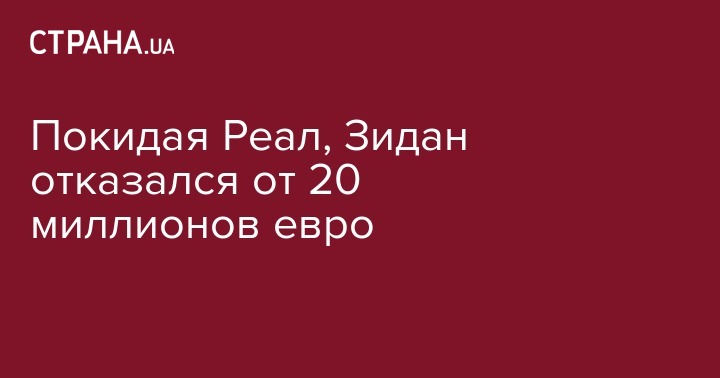 Покидая Реал, Зидан отказался от 20 миллионов евро