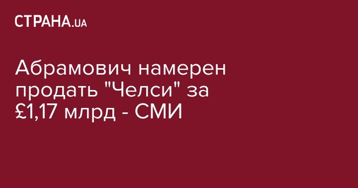 Российский бизнесмен Роман Абрамович в случае своего ухода из футбольного клуба Челси" намерен выручить £1,17 млрд с его продажи.