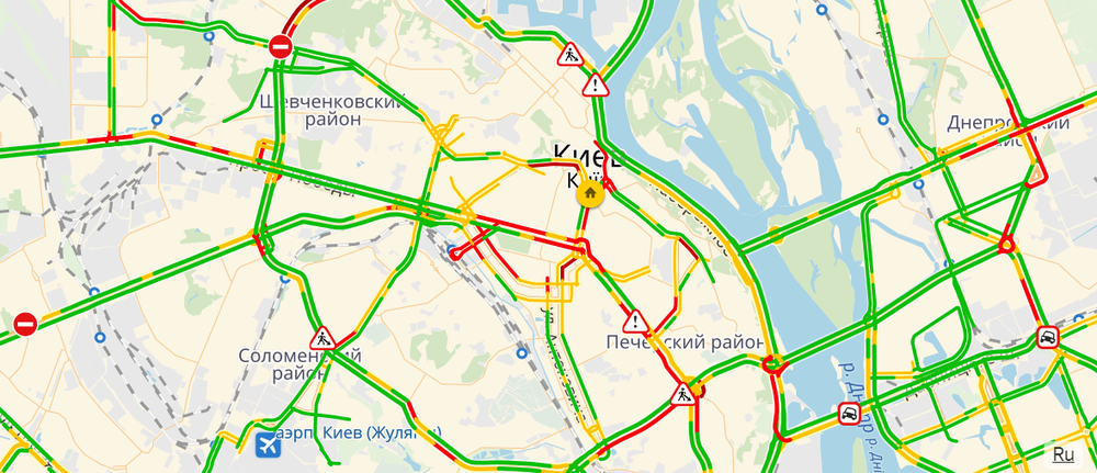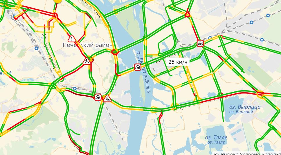 В настоящее время движение затруднено на Южном, Северном и Дарницком мостах.