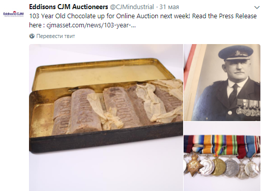 Шоколад принадлежал британскому военному, герою Первой мировой войны Ричарду Буллимору. Он умер в 1967 году.