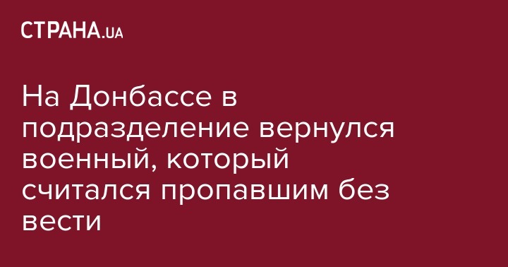 В Донецкой области в свое подразделение вернулся украинский военный, который ранее считался пропавшим без вести.