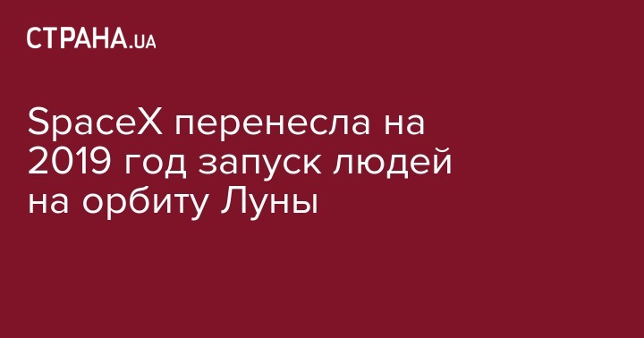 Компания Илона Маска SpaceX перенесла с конца 2018 на середину 2019 года коммерческий запуск своего космического корабля с людьми на орбиту Луны. Об этом сообщает The Wall Street Journal.
