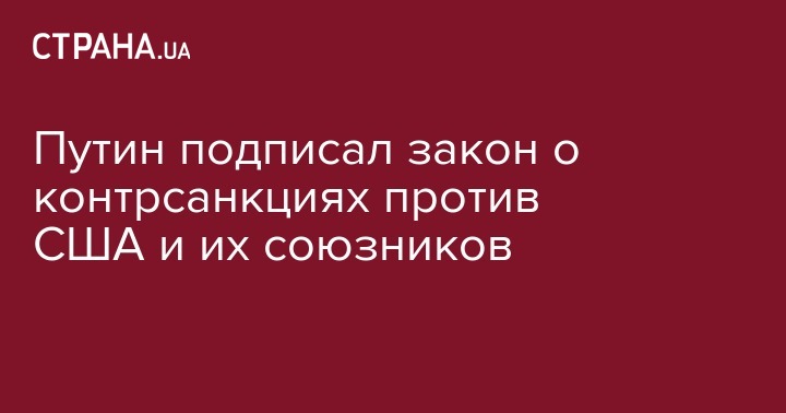 Президент России Владимир Путин подписал закон о контрсанкциях против Соединенных Штатов и их союзников.