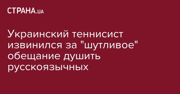 Украинский теннисист Сергей Стаховский, который заявил, что ему хочется задушить человека, когда он слышит от него русскую речь, извинился за некорректную шутку. Он отметил, что она была за гранью дозволенного.