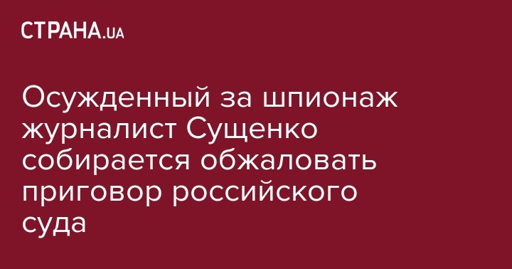 Приговор украинскому журналисту Роману Сущенко, которому дали за шпионаж 12 лет колонии строгого режима, будет обжалован.