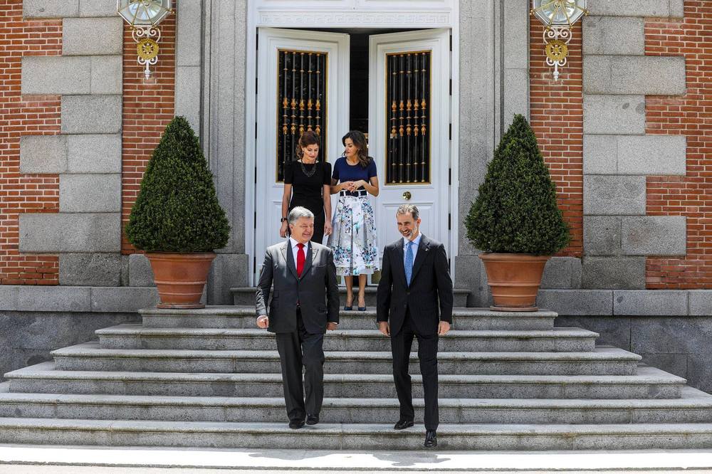 Сегодня, 4 июня, президент Украины Петр Порошенко вместе с первой леди Мариной Порошенко встретился с королем Филиппом VI и его супругой в рамках официального визита. Фото встречи были опубликованы на официальной странице главы Украины в Facebook.