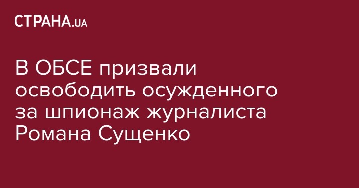 Представитель ОБСЕ по свободе СМИ Арлем Дезир выразил сожаление в связи с обвинительным приговором гражданину Украины Роману Сущенко, осужденному в России за шпионаж. Дезир призвал российскую власть освободить его.