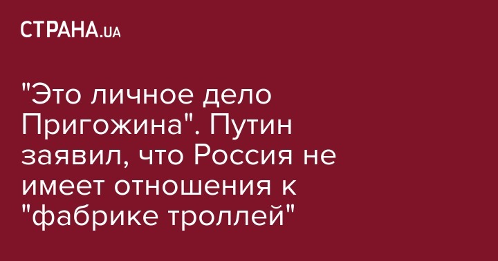 На вопрос журналиста о том, что Пригожин, которого США обвиняют в попытках повлиять на выборы с помощью так называемого агентства Internet Research Agency, известного как "фабрика троллей", поддерживает тесные отношения с российским руководством и его называют "поваром Путина", президент России заявил, что нужно отделять деятельность государства и ее граждан.