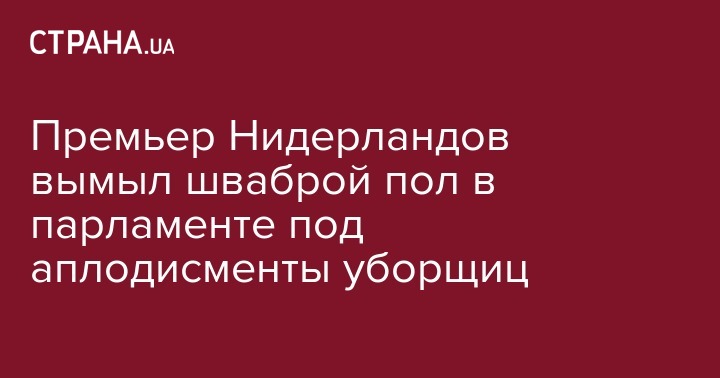 Премьер-министр Нидерландов Марк Рютте вытер полы в парламенте шваброй после того, как расплескал стаканчик кофе.