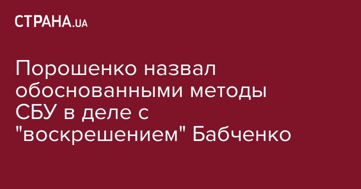 Президент Петр Порошенко считает обоснованными методы, использованные в деле Аркадия Бабаченко Службой безопасности Украины, которая устроила инсценировку убийства журналиста для "для защиты свободы слова".