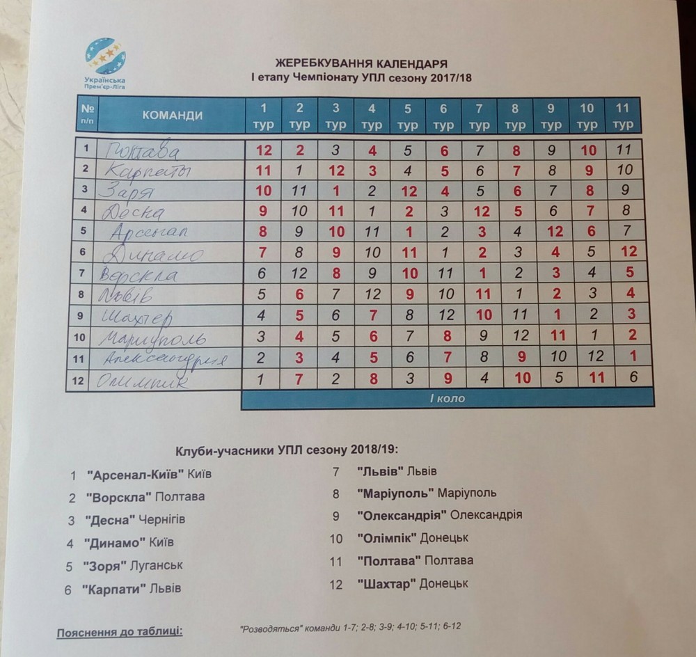 Кроме этого, УПЛ утвердила и календарь первого этапа чемпионата Украины сезона 2018/2019.