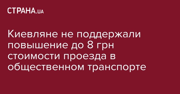 Киевляне не поддержали запланированное на середину июля повышение стоимости проезда в общественном транспорте до 8 грн. В процессе общественного обсуждения на сайте КГГА, которое проходило с 17 мая по 3 июня, "против" высказались 993 человека, а "за" - только 294, пишет "Сегодня".