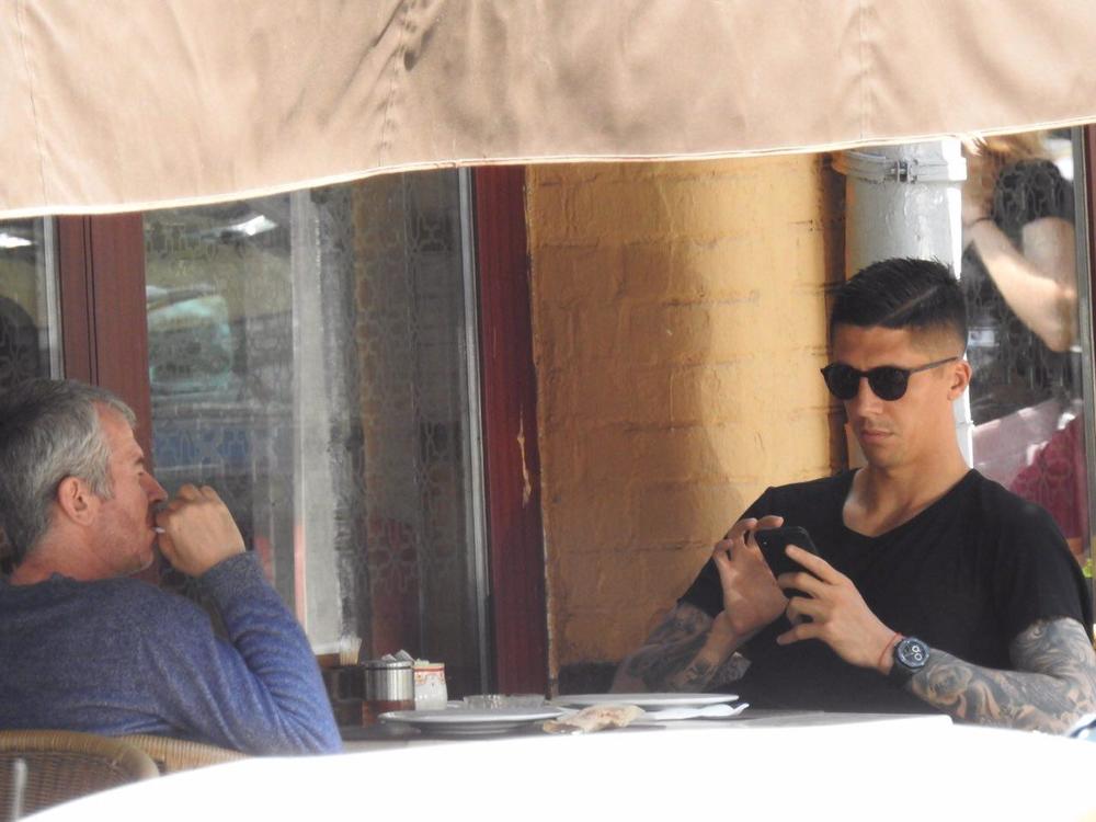 Евгений Хачериди, гладко выбритый, и в компании спутника перекусил шаурмой в лаваше. Футболист сейчас находится в отпуске и может "рискнуть" с экзотическими блюдами, не опасаясь за свою форму.