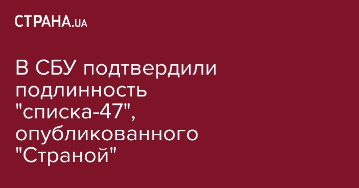 В СБУ подтвердили подлинность "списка-47", опубликованного "Страной"