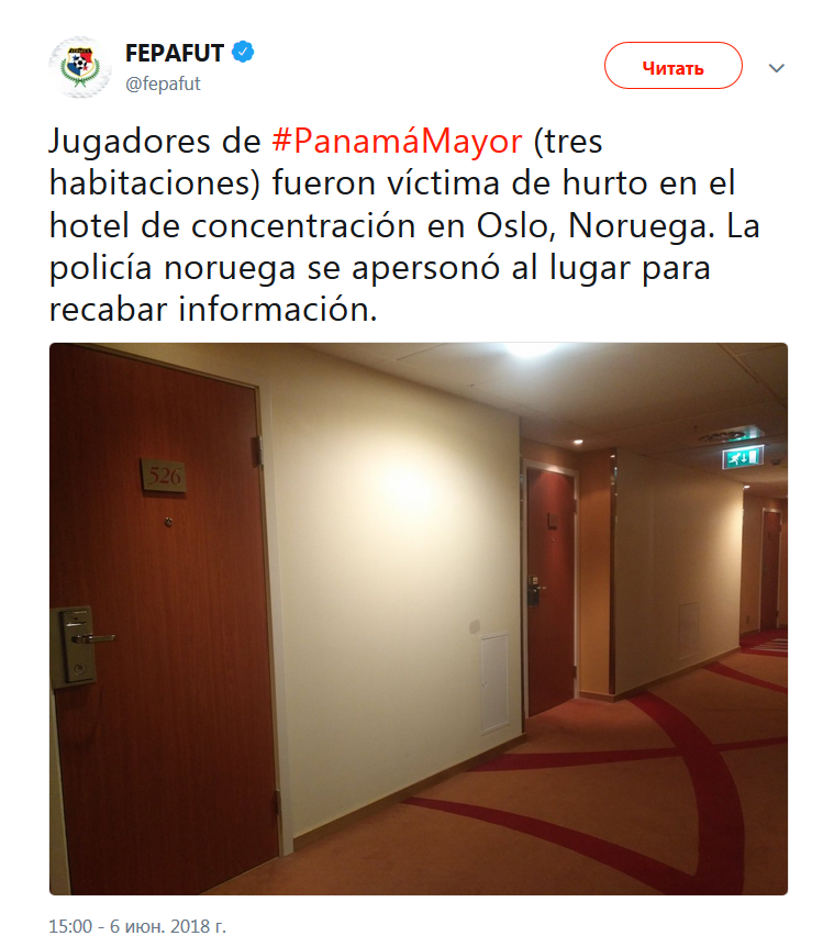 Перед игрой сборная Панамы остановилась в отеле в Осло. Воры воспользовались отсутствием футболистов и обокрали три номера, в которые были заселены игроки. Полиция изучила место преступления и начала расследование.