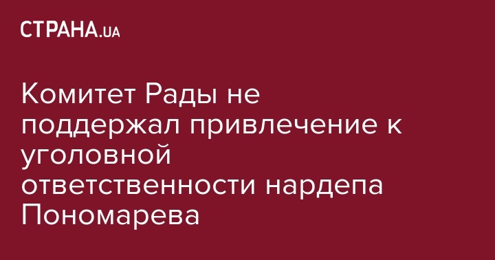 Регламентный комитет ВР 7 июня на своем заседании признал немотивированным представление Генпрокуратуры "О предоставлении согласия на привлечение к уголовной ответственности народного депутата Украины Пономарева Александра Сергеевича", пишут "Факты"