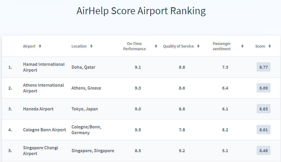 Рейтинг аэропортов сформирован на трех факторах: соблюдение графика авиарейсов, качество обслуживания и оценка результатов обработки жалоб клиентов.