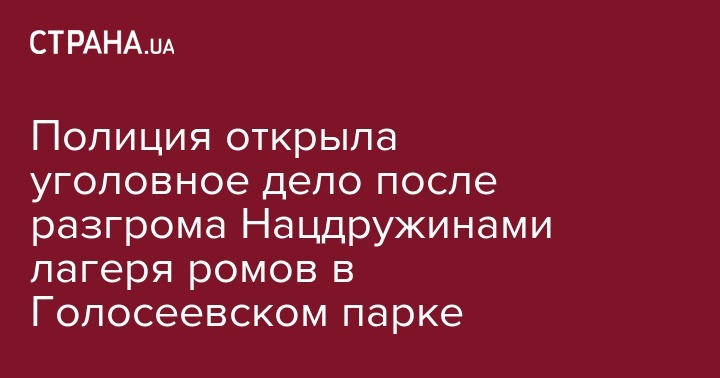 Киевская полиция открыла уголовное производство по факту разгрома представителями "Национальных дружин" поселения ромов в Голосеевском парке Киева. Об этом сообщается на сайте Нацполиции Киева.