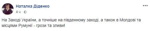 Об этом сообщила синоптик Наталья Диденко на странице в социальной сети Facebook и показала карты.