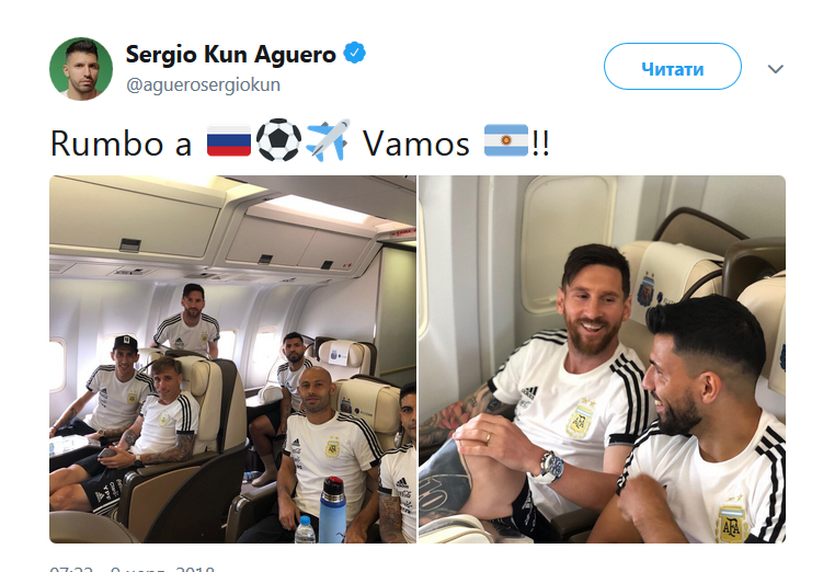 Во время полета Месси и компания много шутили и с удовольствием позировали для официального Twitter сборной. В России сборная Аргентины будет базироваться в подмосковном городе Бронницы. А 11 июня команда проведет открытую тренировку.